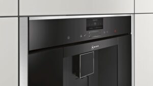 La machine à café encastrable Neff est équipée d’un broyeur à grains intégré, qui permet de moudre les grains de café frais pour chaque tasse. Elle dispose également d’un système de pré-infusion pour un meilleur goût et d’un réservoir d’eau amovible pour faciliter le remplissage et le nettoyage.